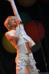 Но не только это. Ведь давно в прошлом сольные выступления даже звезд первой величины. Теперь каждый уважающий себя исполнитель в обязательном порядке обзаводится кордебалетом, превращая выступление певца в большое красочное шоу. Но чем же хуже наши Киркоровы и Сердючки? Вот и пришлось хореографу еще и увязывать конкурсные номера юных певцов с танцевальным сопровождением. В качестве кордебалета выступил хореографический коллектив FAIRYLAND THEATRE. Надо сказать, что юным танцорам, большинству из которых также никак не больше лет, чем и участникам конкурса, такая «работа» тоже была в новинку. Так что дебютов на “MATRYOSHKA 2004” более чем хватало.